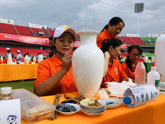 曹爱勤在千名陶艺家众创吉尼斯纪录活动现场创作