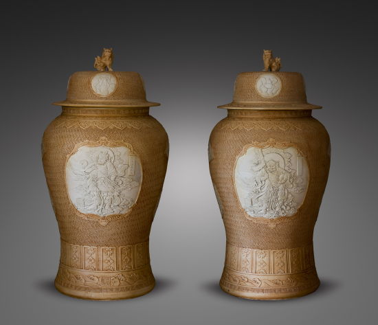 曹爱勤作品:大型陶瓷雕刻将军罐《四大天王》