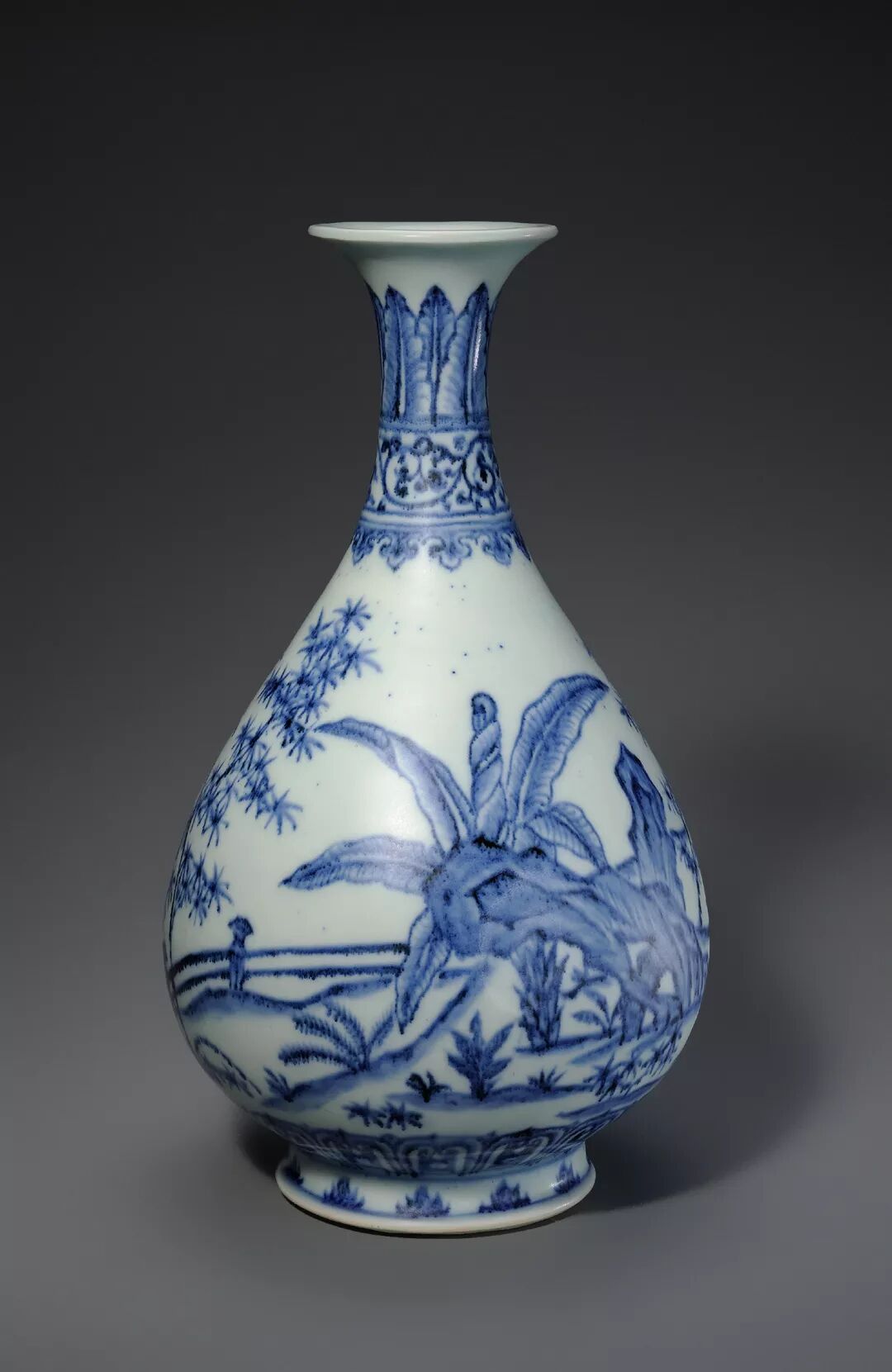 明永乐 景德镇窑青花竹石芭蕉纹玉壶春瓶