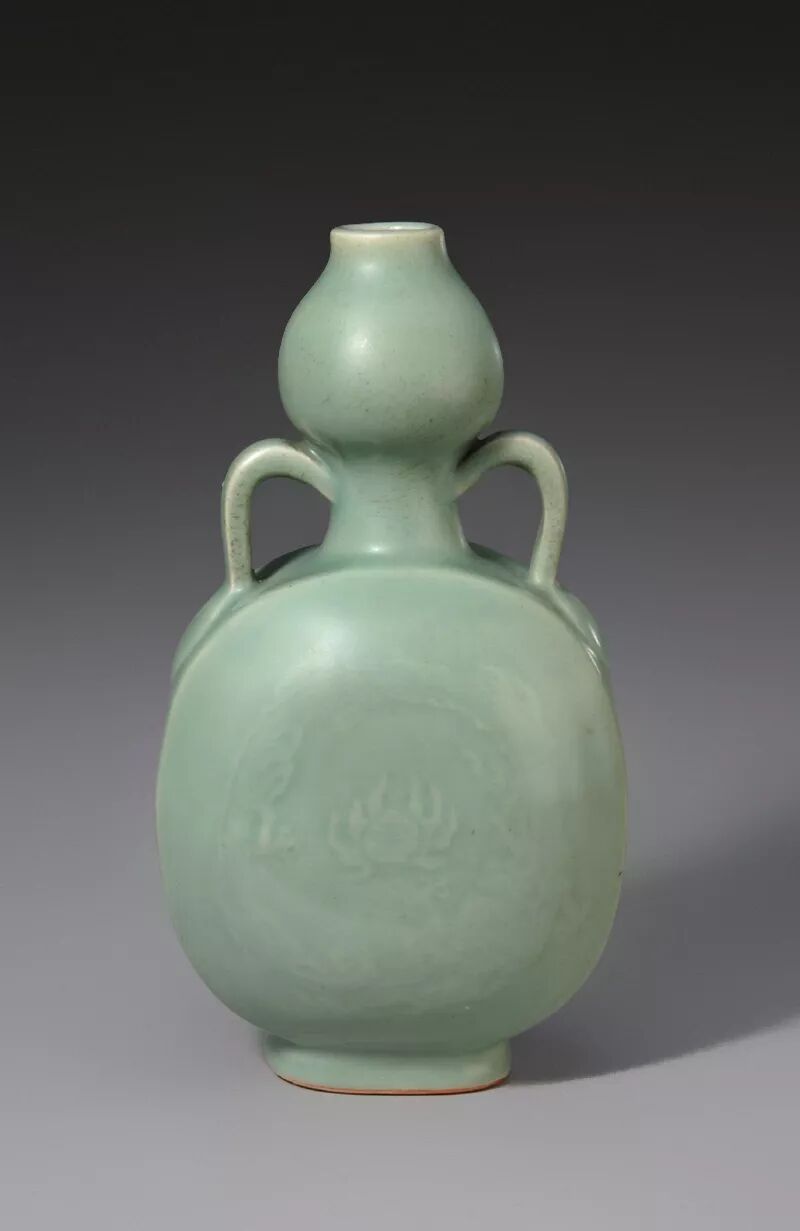 明早期 龙泉窑青釉龙纹绶带耳葫芦式扁瓶