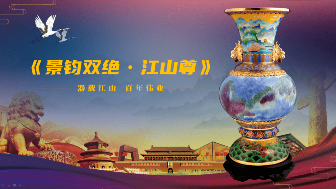 2020年12月1日,“景钧双绝·江山尊”重大国际艺术成果见证会在北京工艺美术博物馆召开。由中国工艺美术大师霍铁辉与中国陶瓷艺术大师晋晓瞳多年摸索并最终完成的景泰蓝与钧瓷双剑合璧作品“景钧双绝·江山尊”现场进行了展示,有关专家对作品给予了高度评价。