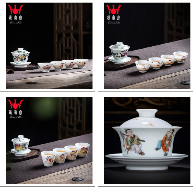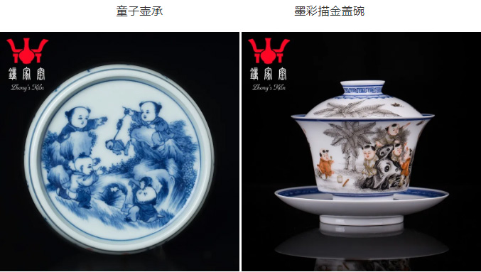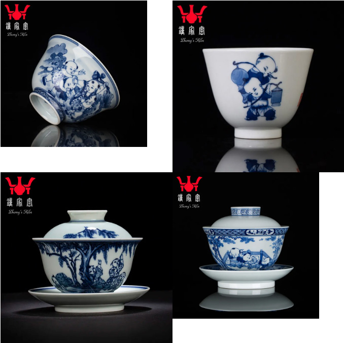 回忆经典,推陈出新。我们在青花的基础上,加以新彩,墨彩描金等绘制出更多更精彩的童趣杯、盖碗、茶具配件。