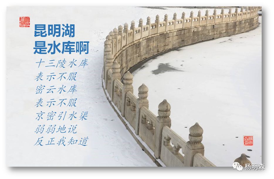 堤坝硬化,不符合生态要求。这一点,古人当然非常明白。昆明湖的东岸之所以要硬化,是因为湖水比堤外高。水位高才有落差,才能流进北京城。说来说去,昆明湖还是一座水库。