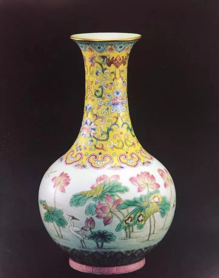 清嘉庆粉彩荷莲纹赏瓶