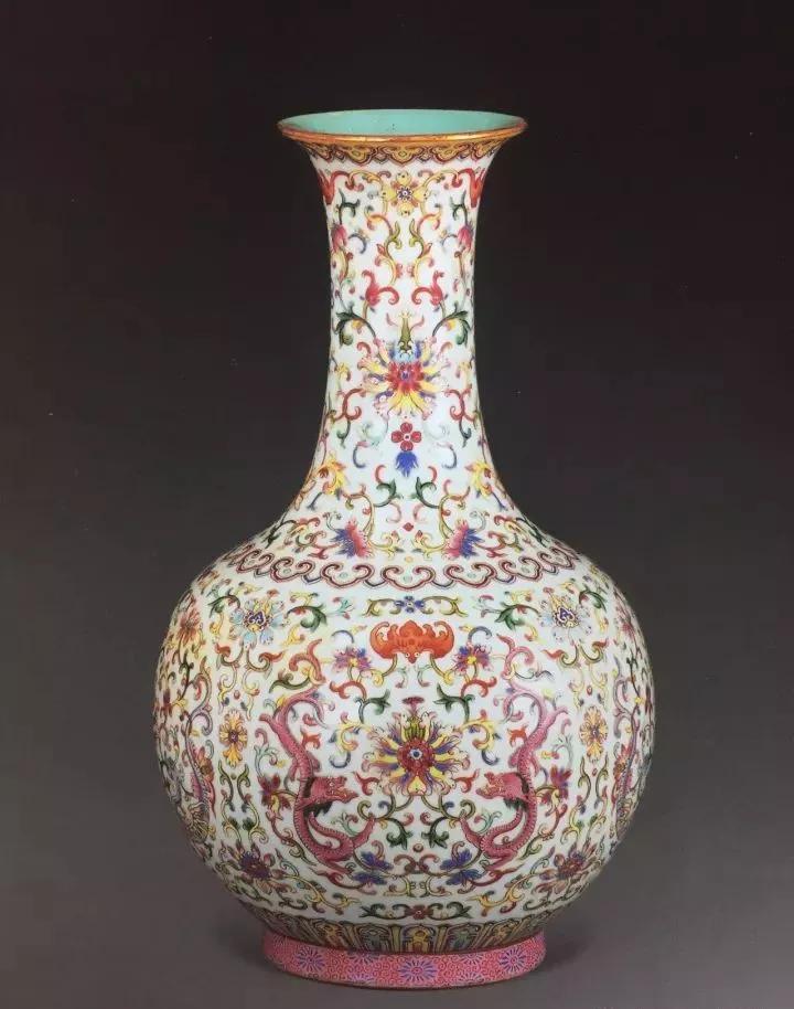 清嘉庆粉彩双龙纹赏瓶