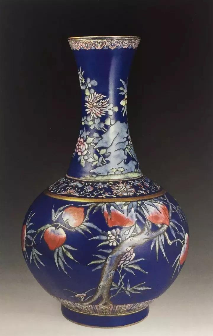 清光绪祭蓝釉粉彩桃蝠纹赏瓶