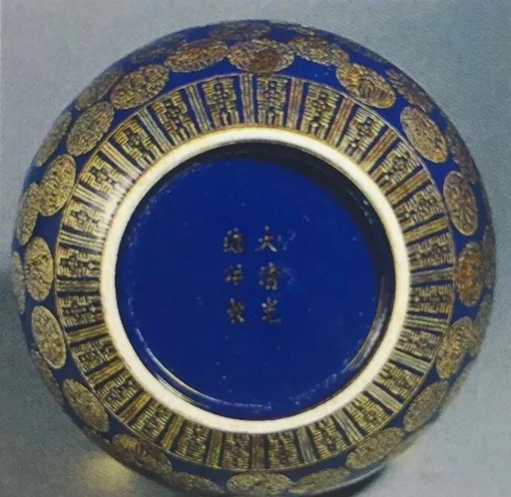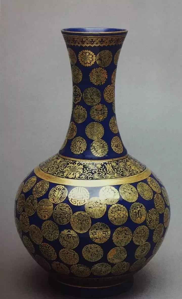 清光绪祭蓝釉金彩皮球花纹赏瓶