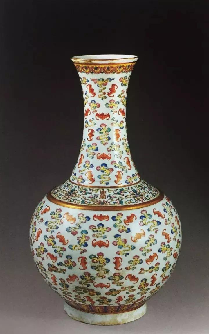 清宣统粉彩云蝠纹赏瓶