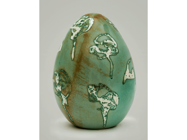 Later on, this vision changed and I started working with egg-shapes in an attempt to show different ways of walking life, then static totem-shapes turn into the egg-like shapes as a metaphor of life.