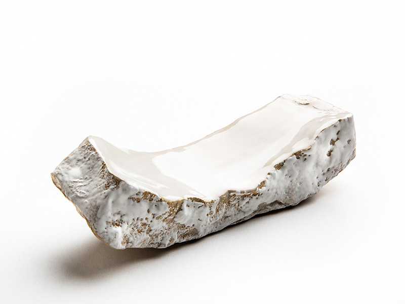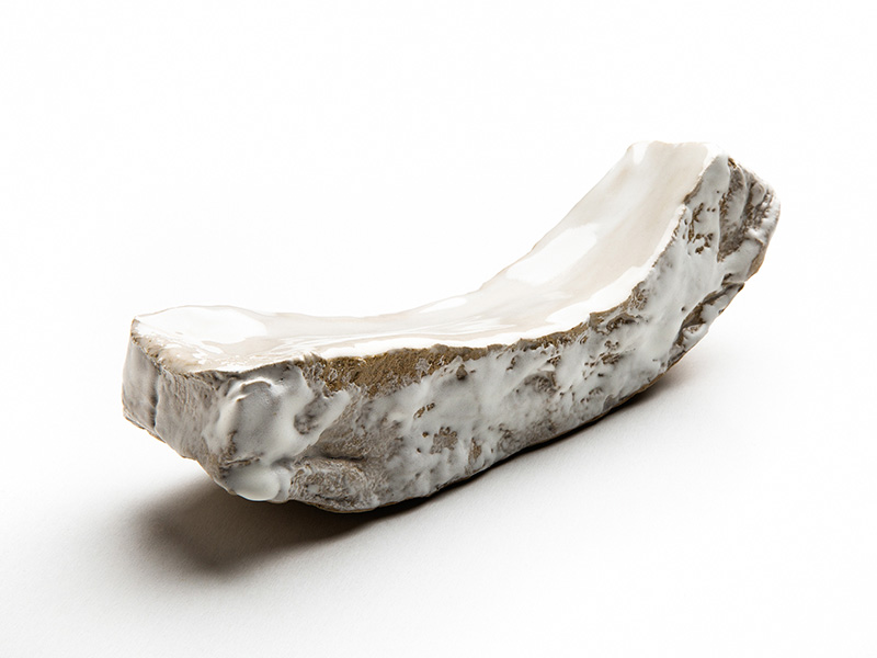 One of central themes of my works is to create ceramic objects that will emphasize the delicacies of food in a modern and uncoventional way, as most traditonal food presentations often fail to reveal the elegance of food. In this work, I intend to direct the beholders to focus on the ceramic object as the central piece of food presentation. The neutral color of the glaze is not only trying to visually highlight the food, but also to integrate the food with the artwork. Due to the organic texture of the vivid object’s corpus, the upper surface of ceramic piece emerges and embeds the food naturally. In particular, the goal of this presentation also attempt to enhance the preciousness of enjoying food.
