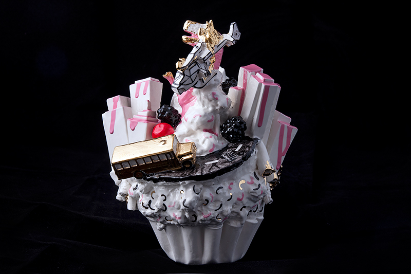 CrocodilePOWER is a group founded in 2011 by two Russian artists: PeterGoloshchapov (born in 1982) and OksanaSimatova (born in 1979). Working in a group has become a new creative experience for both. They turned to the theme of studying today’s world and the place of man in it. CrocodilePOWER create mythologies somewhere between fantasy and reality, between technology and nature. They realize them in projects that unite different art objects: painting, sculpture, and installations. CrocodilePOWER painting depict landscapes of dystopia, and in sculpture, their characters are created from fiberglass, porcelain, wood, moss, bark, iron, and other materials. In their projects, the artists try to achieve the sense of “augmented reality”, where fictional is so organically built into a reality we know, that its existence seems possible (either in the past, present and future). Participants of the International Biennale of Vallauris (2014) and the Moscow International Biennale for Young Art (2014, 2016). In 2015, a solo exhibition of the group was held at the Moscow Museum of Modern Art. Their works are part of numerous private collections in Russia and abroad.