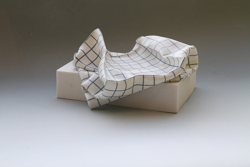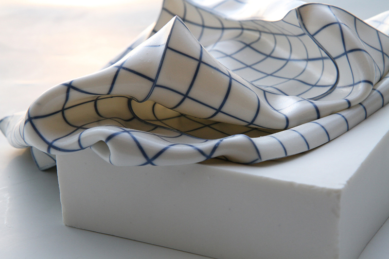 deconstructed, slumped, fifired and re-fifired. As well as challenging the fallibility of porcelain, this