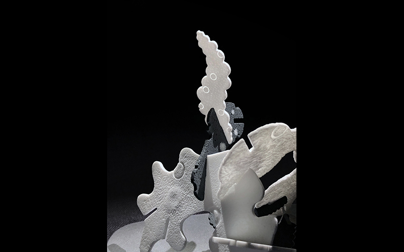 To capitalise on the allure of bone china I adopt ‘high-risk’ techniques - often unconventional, certainly against traditional good practice - which push the clay to its very limits and where intuition allied with experience is relied upon to make a successful piece. Assimilating new technologies like water-jet cutting into my long-established ceramic processes has enabled systems of construction that were previously impossible and with a laser cut stenciling and laser etching I am exploring new methods of applying pattern and texture to the ceramic surface.