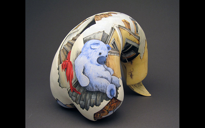I’m interested in all aspect of human psychology, but especially in complexity of intrapersonal struggle, duality of behavioral motivations and interpretations, and fragility of self-esteem. My sculptures convey the internal world of a person, as if it is contained inside a closed form. I'm looking for a three-dimensional space that can hold an external world, the world of a broken and twisted perspective. A world remembered, imagined or influenced by the past, a world that is forced by the inversion to live inside a ceramic sculpture, a world that transitions from one dimensionality to the other – a world of a dream, a world of unfulfilled expectations.