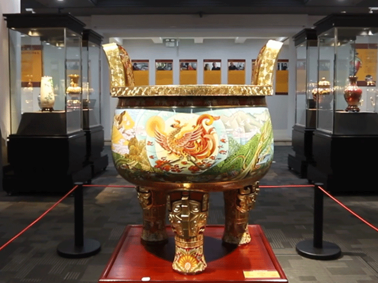 《盛世宝鼎》以国家博物馆一级文物,中国商代青铜器最大的圆鼎《子龙鼎》为创作原型,采用国家级非物质文化遗产景泰蓝制作技艺纯手工打造,造型端庄、大气,雄伟中又不失柔美优雅。
