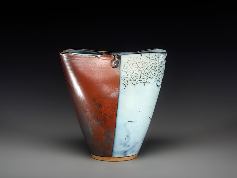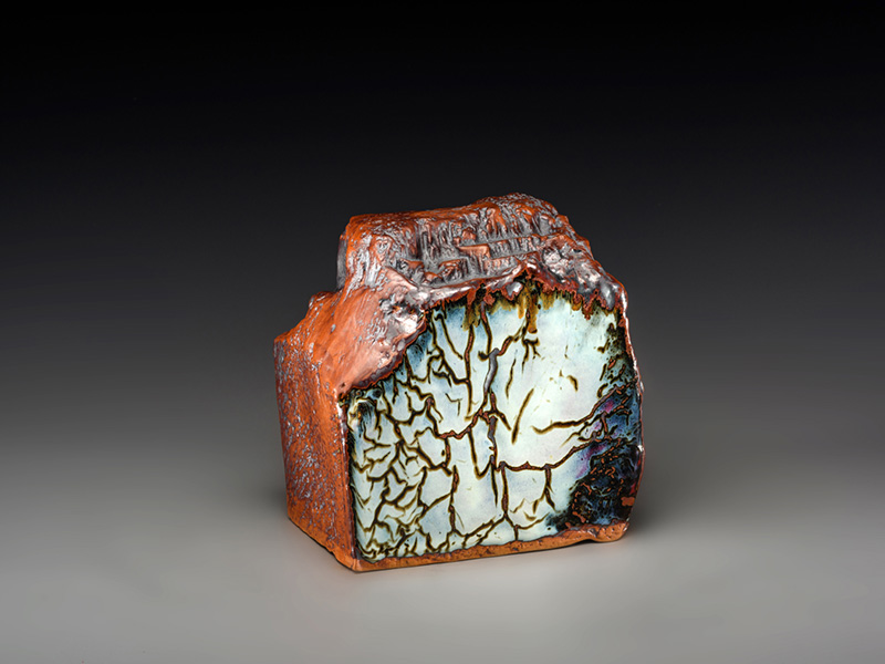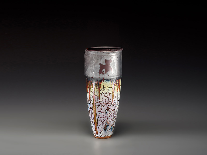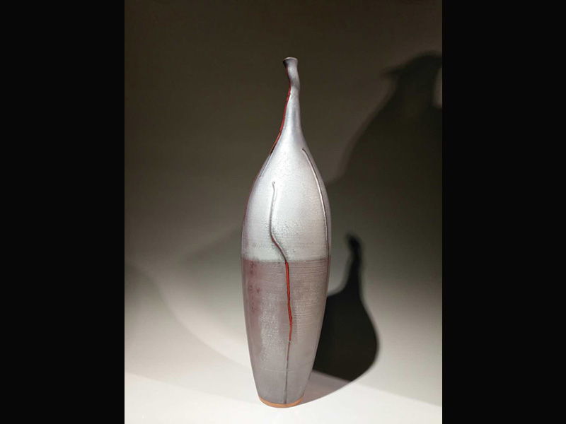 His works are known for their beautiful glaze colors, noble and vast shapes, and magical patterns. They use the language of stone and the spirituality of fire to explain the art of stone and fire. Its mighty atmosphere makes gentlemen Shocked. The shapes of her works are mostly taken from ancient pottery, bronze, and some element symbols in ancient culture, reproducing the incomparable wisdom and long-standing civilization of the Chinese nation. The glaze colors of the works are no longer limited to those traditional glaze colors and texture effects, but more "flame red", "black Tang Jun", "gold inlaid green", "pigeon blue", "iron sheet glaze", "jun bead glaze" and " "Flame pattern", "plum pattern", "dragon pattern", "lightning pattern", etc., such as rock paintings, simple texts, like autumn vines, or black and red shadows, or emerald transformation, or thunder and lightning, or silk strands. Or magma is rolling, showing a wonderful and magical, unprecedented kiln transformation effect.