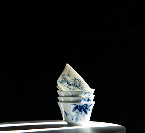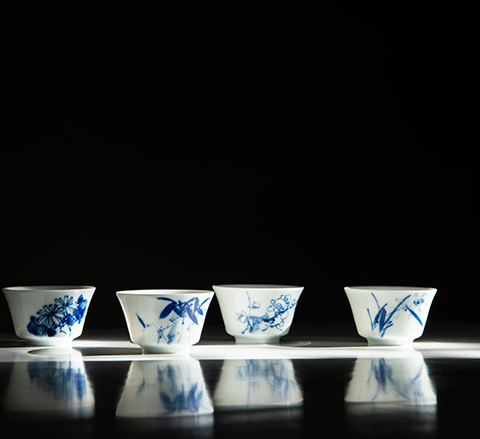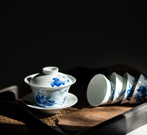 "Junya Danxiang" Hand-painted Blue and White 6 Tea Set