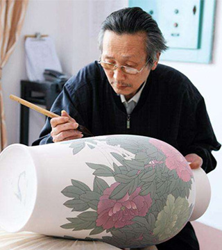 (1941-2013), from Liling, Hunan. After graduating from elementary school at the age of 13, he followed his father Chen Hua to learn how to make kilns. At the age of 15, he entered the Hunan Ceramic Research Institute and learned underglaze multicolored art from the master Wu Shouqi. He has 57 years of art and is known for his fine brushwork flowers.