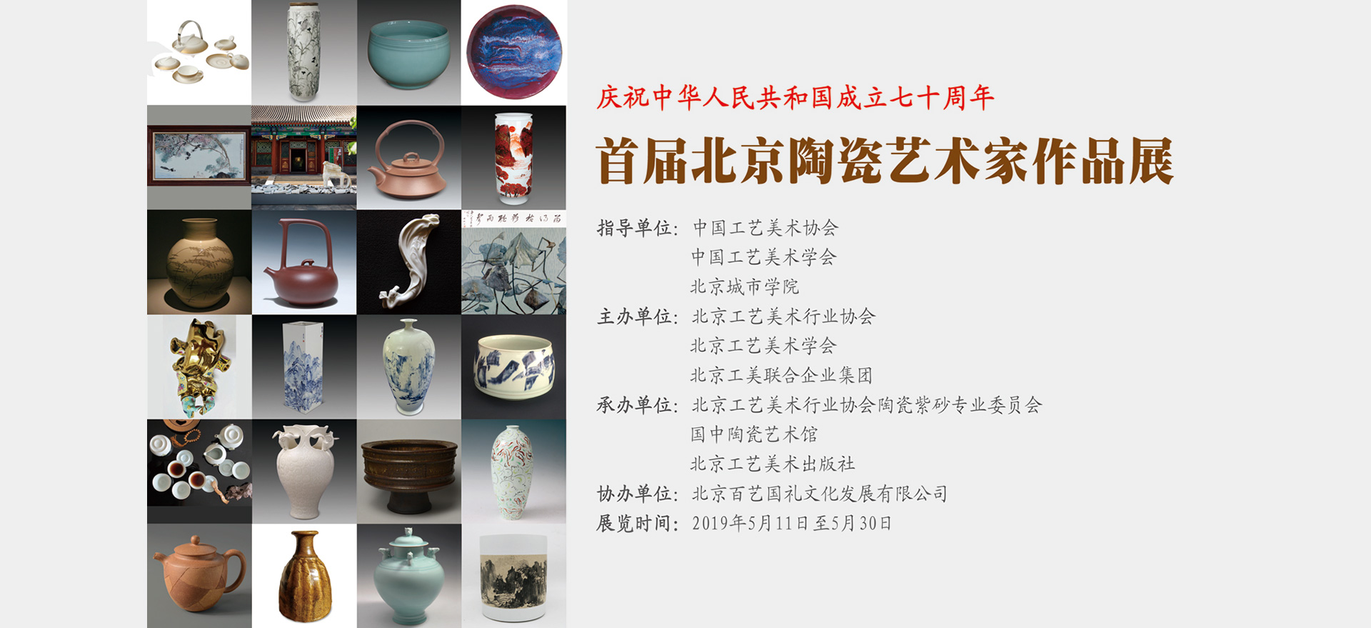 In order to celebrate the 70th anniversary of the founding of the People’s Republic of China, according to the needs of the revitalization and development of Beijing ceramic art, we consciously assume the mission of raising the flag, gathering people’s hearts, educating newcomers, promoting culture, and exhibiting images, and tell the story of Beijing ceramic artists with heart and soul , The original intention of spreading the voice of Beijing ceramic artists, we held the "First Beijing Ceramic Artists Exhibition"; the exhibition is divided into two parts: specially invited participating authors and participating authors. The specially invited participating authors mainly come from the Academy of Fine Arts of Tsinghua University, the Chinese Academy of Art, and the Central The Academy of Fine Arts and Beijing City College. The participating authors are mainly from the Beijing Arts and Crafts Industry Association and the Beijing Arts and Crafts Association; the specially invited participating authors each select 1 set of works for the exhibition, and the participating authors each select 5 sets of works for the exhibition to show to the people The creative wisdom and aesthetic exploration and pursuit of Beijing ceramic artists.