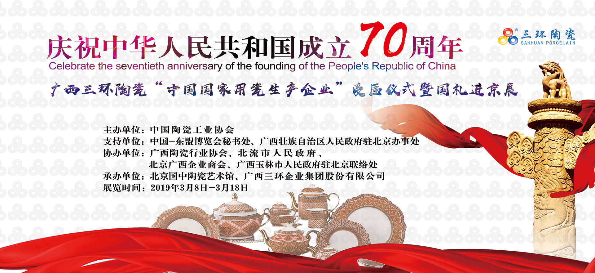 In order to celebrate the 70th birthday of the motherland, under the auspices of China Ceramic Industry Association and Guangxi Yulin Municipal People’s Government, at the China-ASEAN Expo Secretariat, Guangxi Zhuang Autonomous Region People’s Government in Beijing Office, Guangxi Ceramic Industry Association, Beiliu City People’s Government With the joint support and assistance of the government, the Beijing Guangxi Enterprise Chamber of Commerce and the Liaison Office of Guangxi Yulin Municipal People’s Government in Beijing, Beijing Junior High Ceramics Art Museum and Guangxi Sanhuan Enterprise Group gathered together to plan the exhibition with full sincerity , Bringing a series of fine ceramics and top-notch "high-temperature hard porcelain" production technology, in the form of exhibitions and seminars, we will report on our excellent results, strengthen our beliefs, continue to work hard with great pride, and embrace our dreams!