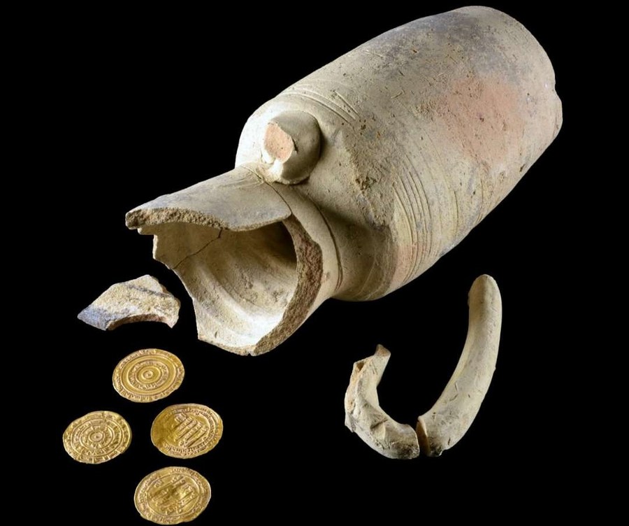 Israel discovers 1,000-year-old pottery juglet containing four gold coins in Jerusalem. (Photo provided by Israel Antiquities Authority)