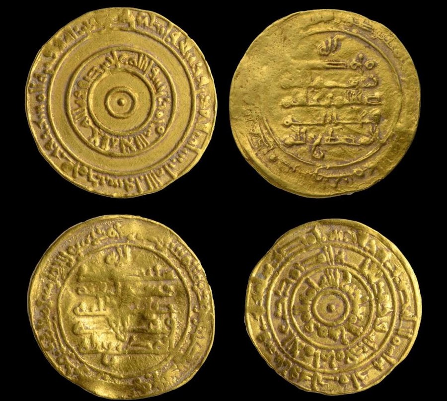 Two gold dinars were minted in the ancient city of Ramla in central Israel during the rule of Caliph al-Muti (946-974), while the other two were minted in Cairo by the Fatimid Caliphate's rulers al-Mu'izz (953-975) and his successor al-Aziz (975-996).