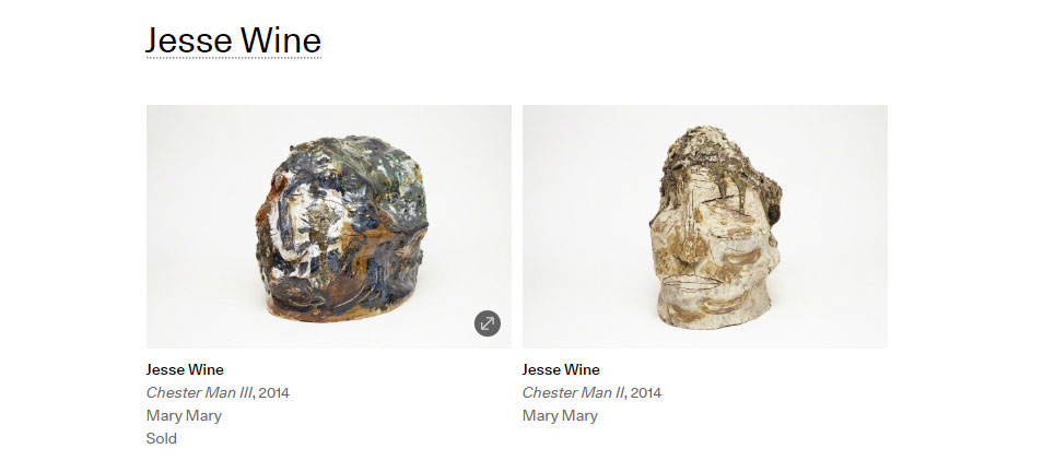 One of the most exciting emerging young British artists working with clay, Wine is currently an artist in residence at the Camden Arts Centre, and recently exhibited with Mary Mary to coincide with the Glasgow International. Wine creates glazed ceramics that resemble saggy arses and rough faces. Here the idea of a functional vessel breaks apart, as the clay falls in on itself.