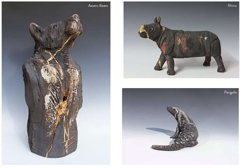 Texturally explorative Relic Dynasties is a collection that explores exotic animals as decorative objects reminiscent of collectors during the past eras in human history. Faced with extinction these species are forever encapsulated in time. The ceramic forms are presented as collectable pieces that would adorn peoples dwellings to signify wealth and style. Focusing in on endangered species in our world today, questions are raised upon the fast growing uncertain futures of these dynasties. Will they serve as a reminder of what we once had for generations to come?