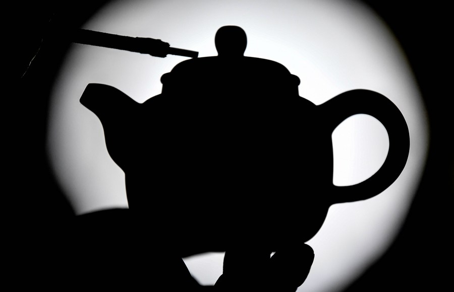 A member of the Lu Jingping team processes a Nixing pottery tea pot in Qinzhou City, south China's Guangxi Zhuang Autonomous Region, Nov. 9, 2020. (Xinhua/Zhang Ailin)