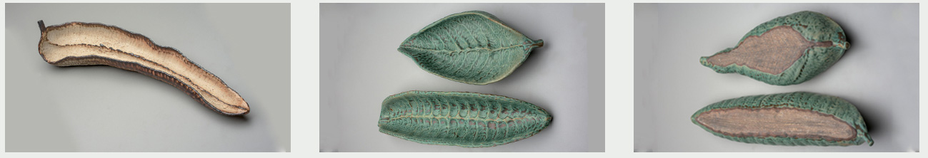 I make clay objects that are influenced by nature. Embedded in the layers of intention and accident are the ideas that inspire my work: the sensuality of form, implied volume, human touch to a natural object, symbols of fragility, healing, and regeneration.