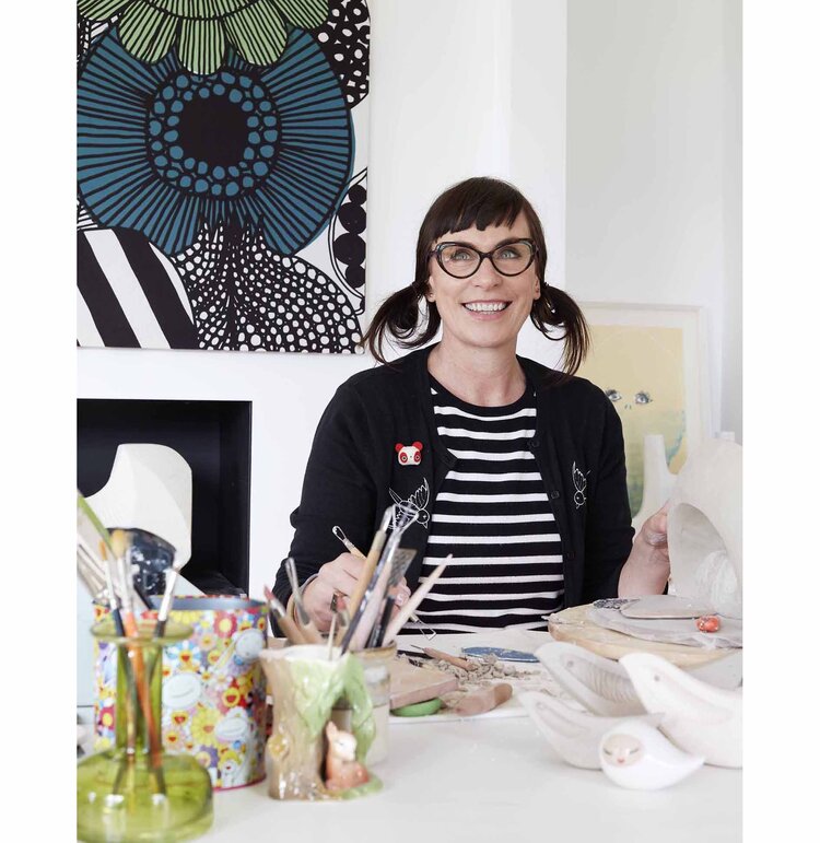 Melbourne-based Jan Vogelpoel produces unique sculptural pieces that reflect her love of organic shapes, vibrant shades, and graphic lines.