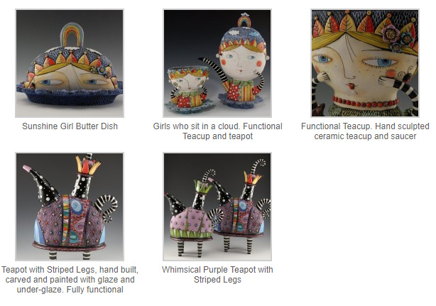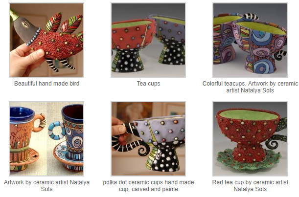 Schaumburg, Illinois based artist Natalya Sots is a real fairy, whose force is to revive inanimate objects, such as a conventional cookware. And for this, it is not necessary to possess magical powers or enter the cartoon “Beauty and the Beast,” where the cups, saucers and teapots were able to run, sing, talk and dance. Enough to be creatively minded artist in ceramics, whose skillful hands create works of art in which it is difficult to find the same cups, teapots, saucers … Natalya Sots ceramics are enjoyable to look at and fun. All of her work is in earthenware clay, both terracotta and white talc earthenware. The clay gets bisque fired to around 1900 F (cone 05-06), then glaze is applied and the pieces are fired again. All of her work is entirely hand made so even if there are similar pieces, there will be differences.