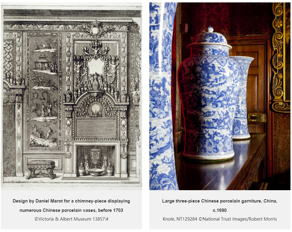 In the 1650s, the demand for garnitures soared thanks to changes in interior design. With the introduction of smaller-scale chimney surrounds, a more prominent mantelpiece provided a focal point for small luxury goods.