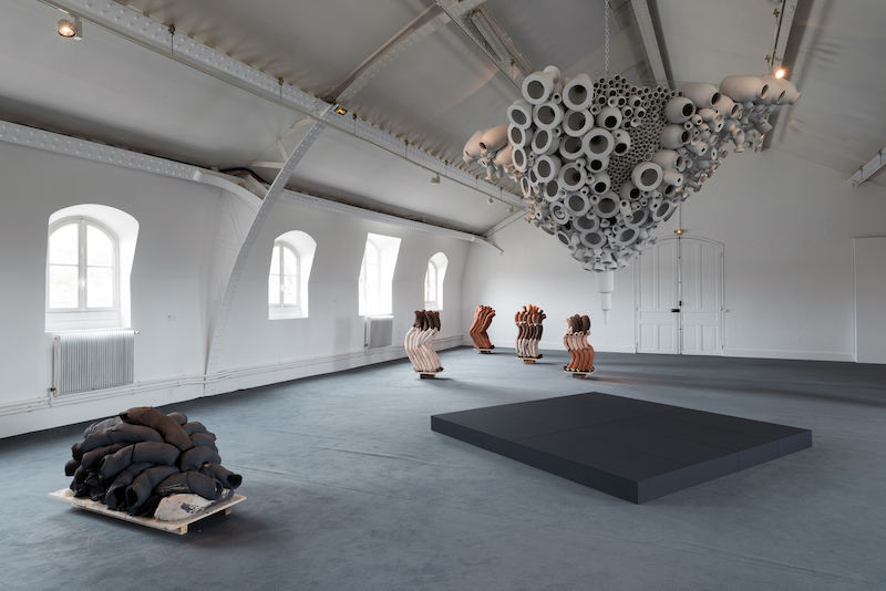 Torbjørn Kvasbø: ‘Tube Sculptures,’ 2018, terracotta, 125 cm height, Sévres // Photo by Andreas Dyrdal