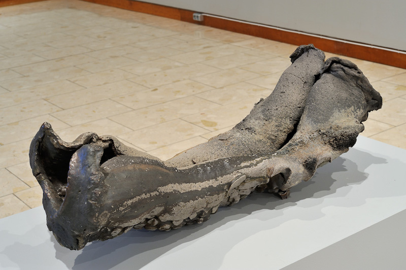 Torbjørn Kvasbø: ‘Trough Form,’ 1997, Iron rich stoneware, stretched plastic slabs, slab built, natural ash glaze and flashing, anagama fired, sand-blasted. L 80 cm, Private collection // Photo: Torbjørn Kvasbø