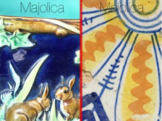 Carmen Pattinson, 2011, Majolica Matters, Spring 2011, Majolica – Where did it all begin?: “Because of their identical names, there has been some confusion between tin-glazed majolica/maiolica and the lead-glazed majolica made in England and America in the 19th century, but they are different in origin, technique, style and history.”