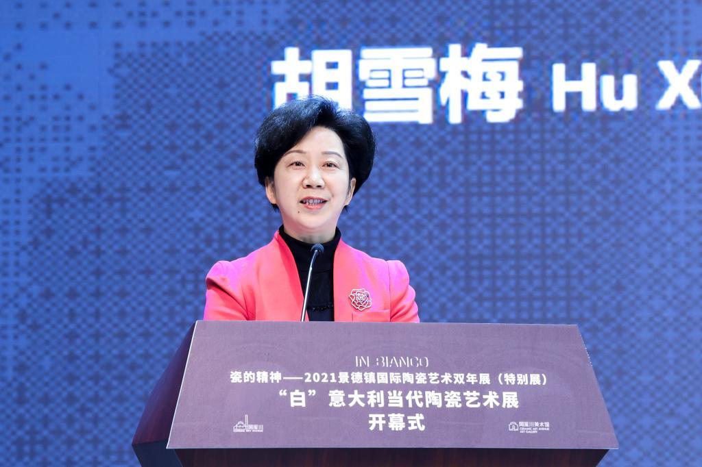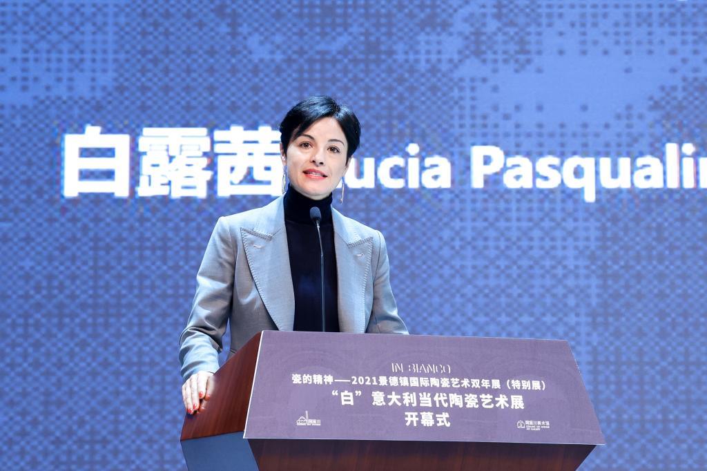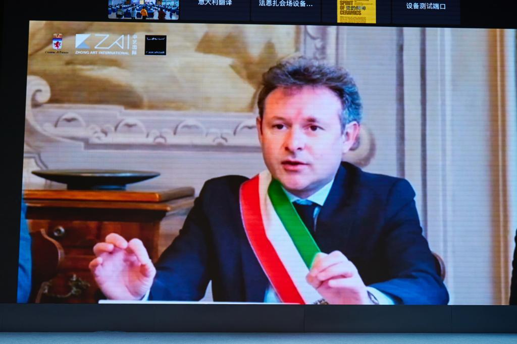 Hu Xuemei said she was very glad to meet everyone here in Taoxichuan Ceramic Art Avenue and the parallel online meeting room in Italian branch to witness the opening of White - Contemporary Italian Ceramic Art Exhibition. Jingdezhen is the only city in the world where the ceramic industry has supported the development for a thousand years, and is the main origin city and important source of goods on the ancient Maritime Silk Road. Jingdezhen ceramics is an important cultural symbol for the world to understand China and China to go globe and an important bridge to promote the exchange of world civilizations. Italy and China are both ancient civilizations and Faenza is the most crucial birthplace of Italian ceramics and is known as the Porcelain Capital of the Western Countries. The two cities meet and merge with each other by the porcelain. She is believed that on the road of mutual learning and interaction, the friendship between the two cities will be more integrated, more exciting and deeper because of porcelain, and will usher in a broader space for development. The artworks on display which represent the painstaking effort made by Italian artists not only show the exquisite level of ceramic craftsmanship, but also reflects the cultural and applied value of contemporary Italian ceramics fused with art, which enjoy a high artistic value. It is hoped that through this exhibition, increasing number of Chinese people would learn about the history and development of Italian ceramics and appreciate the unique charms of Western ceramics. It’s hoped that the two cities would hold hands in hands to make the world a prosperity ceramic culture and a bright future for the communication and integration of world civilizations.