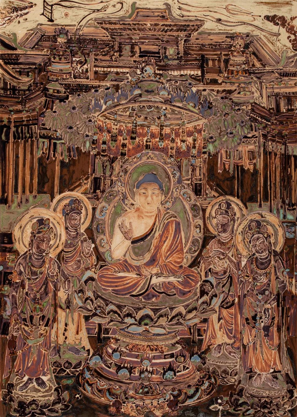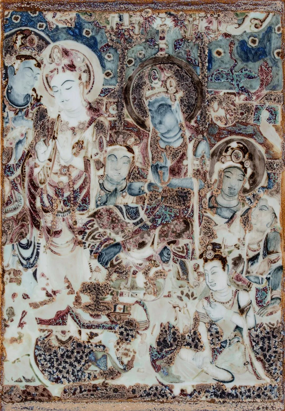 《说法图》黄堃滢90x60cm 高温颜色釉瓷板 2020 (入窑前)