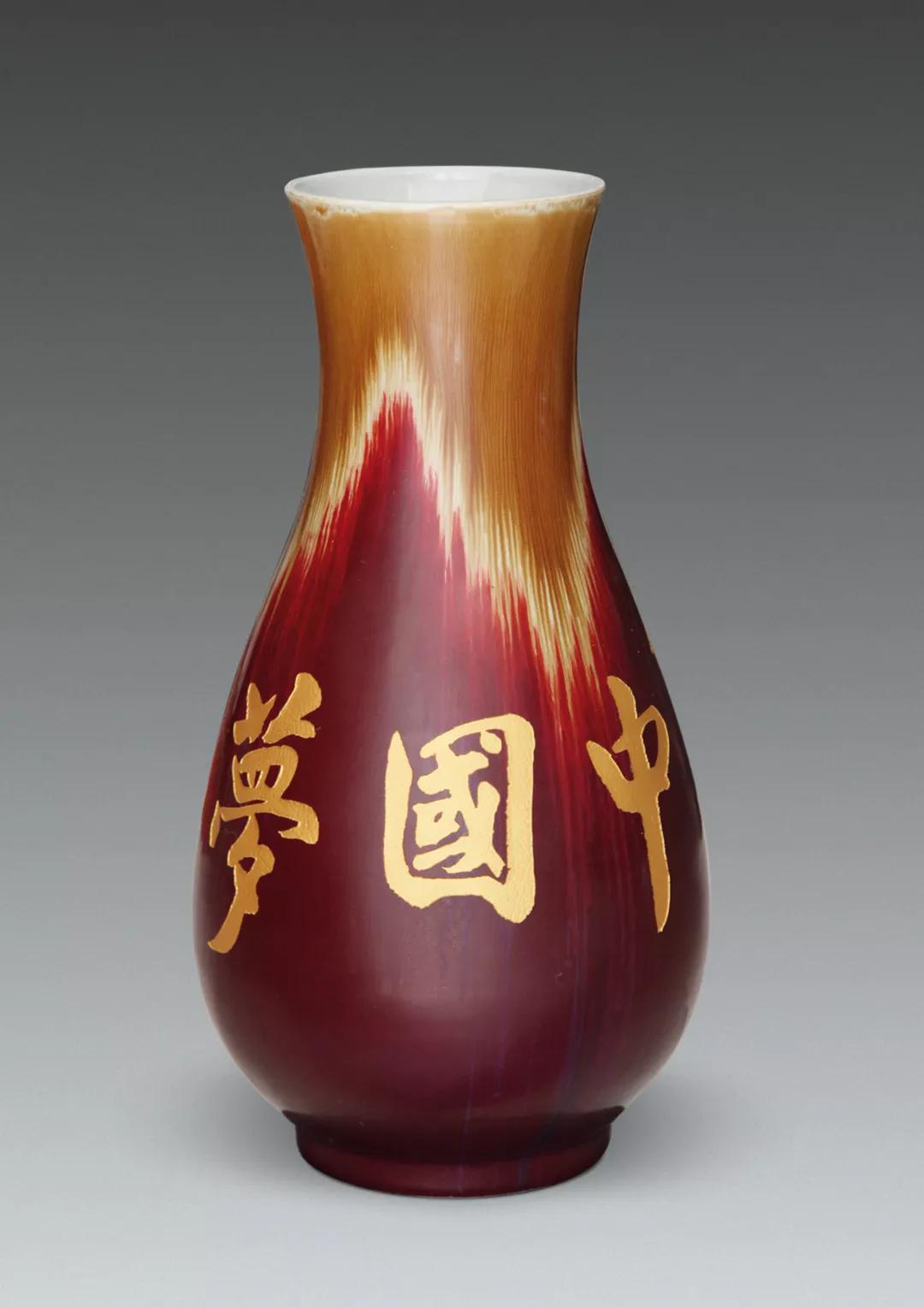 高温窑变颜色釉書法雕刻金字《中国夢》瓷瓶(高56cm口径18cm)