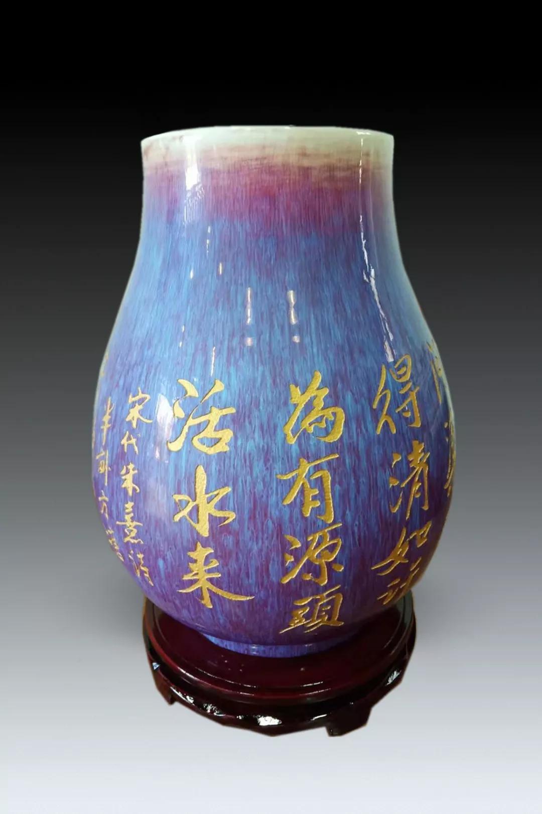高温窑变颜色釉书法雕刻作品瓷瓶《半畝方塘》