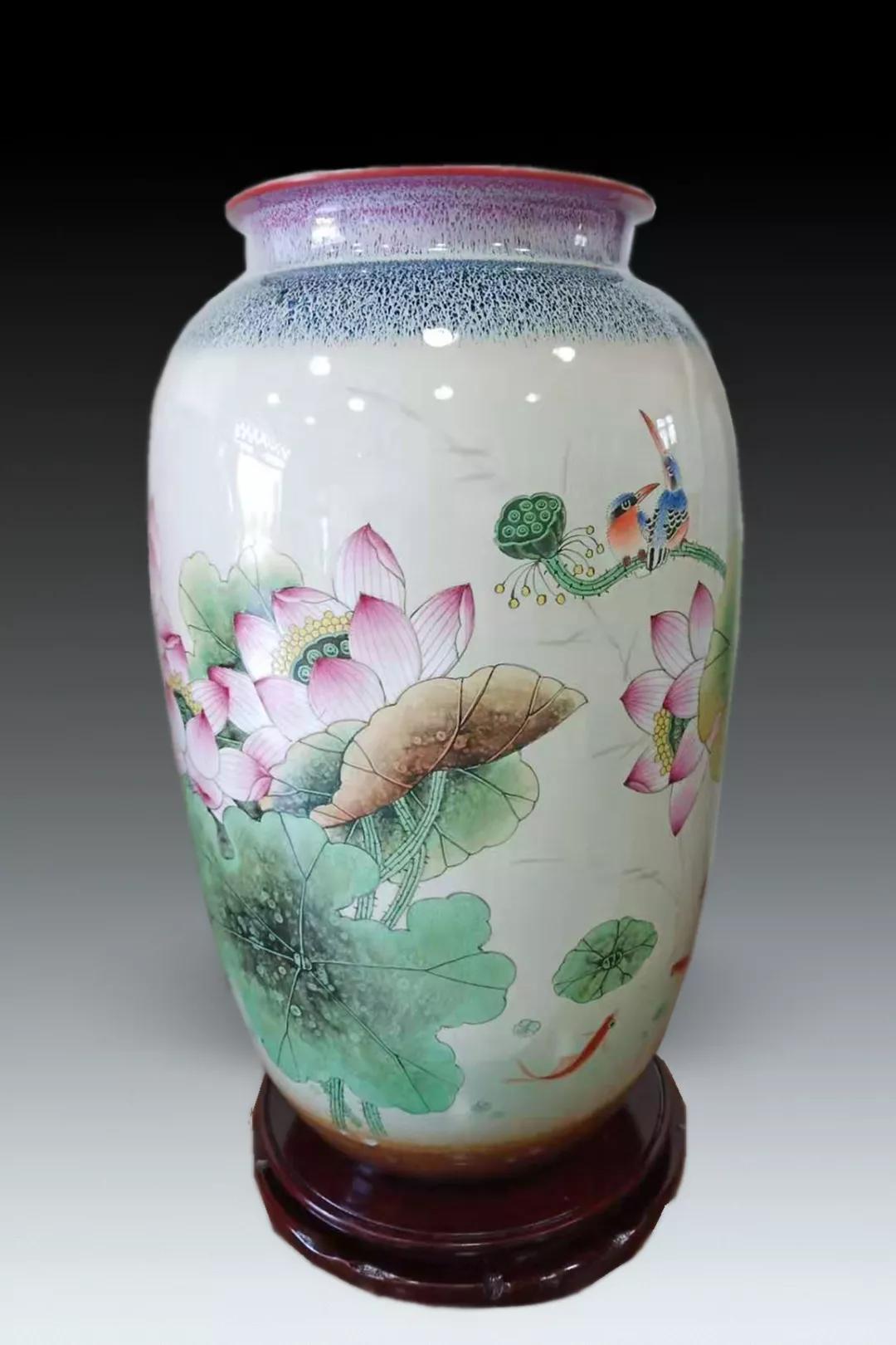 窑变颜色釉瓷画作品《和之韵》瓷瓶(高51cm口径20cm)