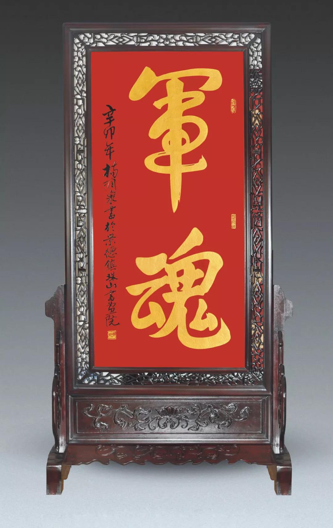 中国红金字《军魂》瓷板 (高200cm宽100cm)
