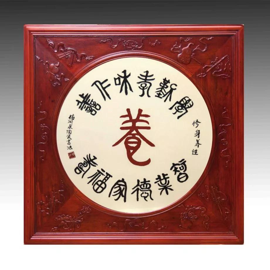 黄彩色釉书法《养》圆瓷板(直径56cm)