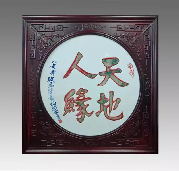 釉里红书法《天地人缘》圆瓷板(直径60cm)