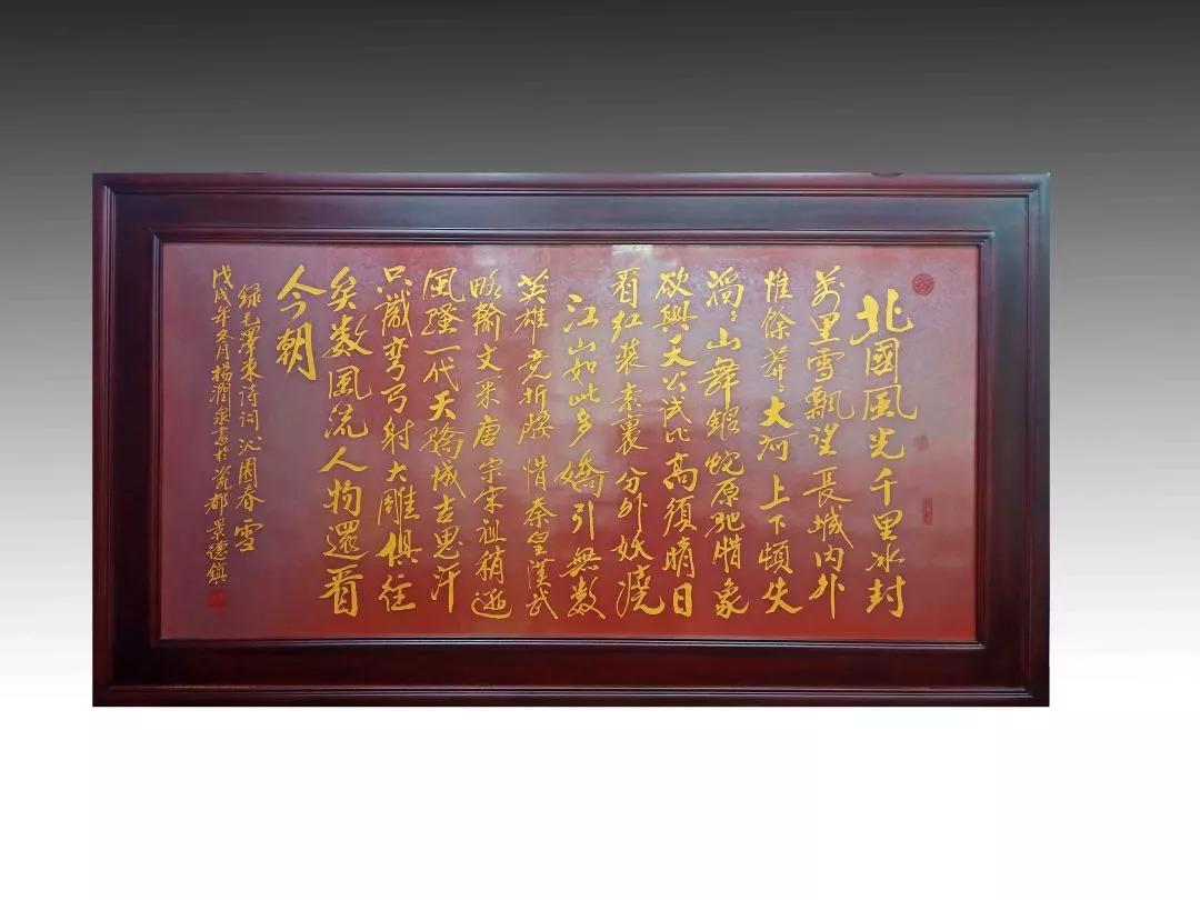 红结晶釉金字书法作品瓷板《沁园春·雪》(长170cm高80cm)