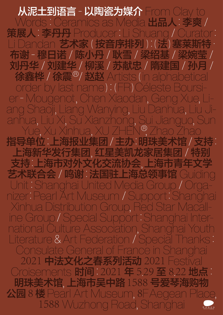 In explaining the impetus behind “From Clay to Words: Ceramics as Media,” Pearl Art Museum director and curator Li Dandan said, “Ceramic is one of the most ancient and ordinary materials. It is one of the artistic mediums that has the closest connections to China’s history and culture, to the exchange between China and the rest of the world, and to nature. These artists have observed and studied ceramics—they are focused on the history, technique, and tradition of ceramics. The physical properties, firing processes, and cultural attributes unique to ceramics can inspire endless creativity. The process of moving ‘from clay to words’ involves hands, hearts, and fire… These ceramic works are products of nature, of ideas, and of labor. In a sense, they are the products of nature and chance; they are physical objects, but they are also metaphors for and symbols of art, creativity, and life.”