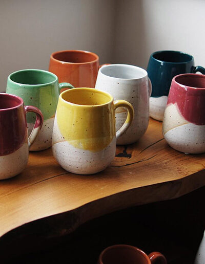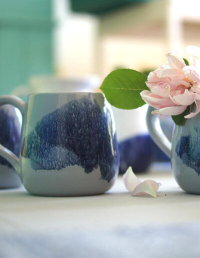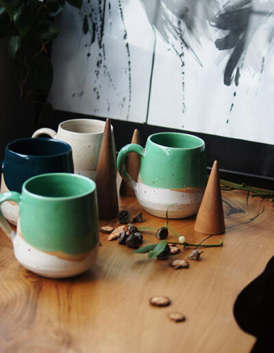 Throwing on the wheel is this strangely addictive, infuriating endeavour that hooked me in. But it wasn’t until three years ago that I started pursuing my own personal work. From the beginning I have always wanted the pieces to be functional, to feel good in your hand or on your lips, to mix contemporary bold colours with painterly strokes. For the pots be useful but a bit special, giving the user a sense that the piece was made especially for them.