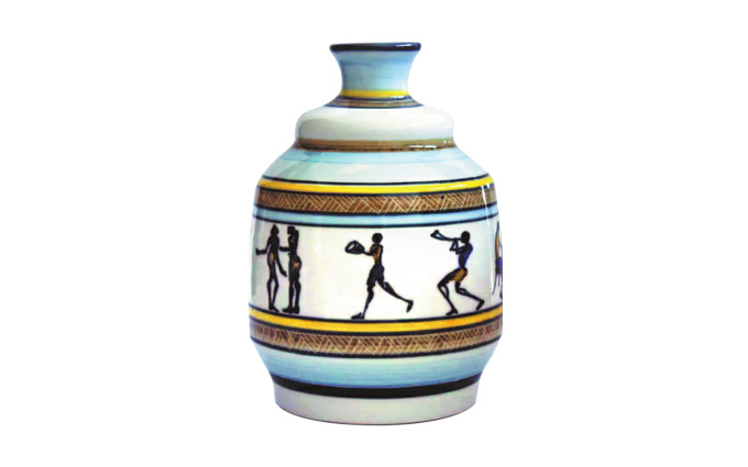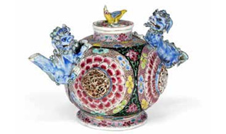With its balanced, rounded pot and cups, the tea set seems like Chinese ceramic at first glance. But closer insp...