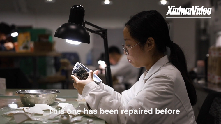 A group of young adults fall in love with traditional porcelain restoration and drawing in Jingdezhen in east Ch...