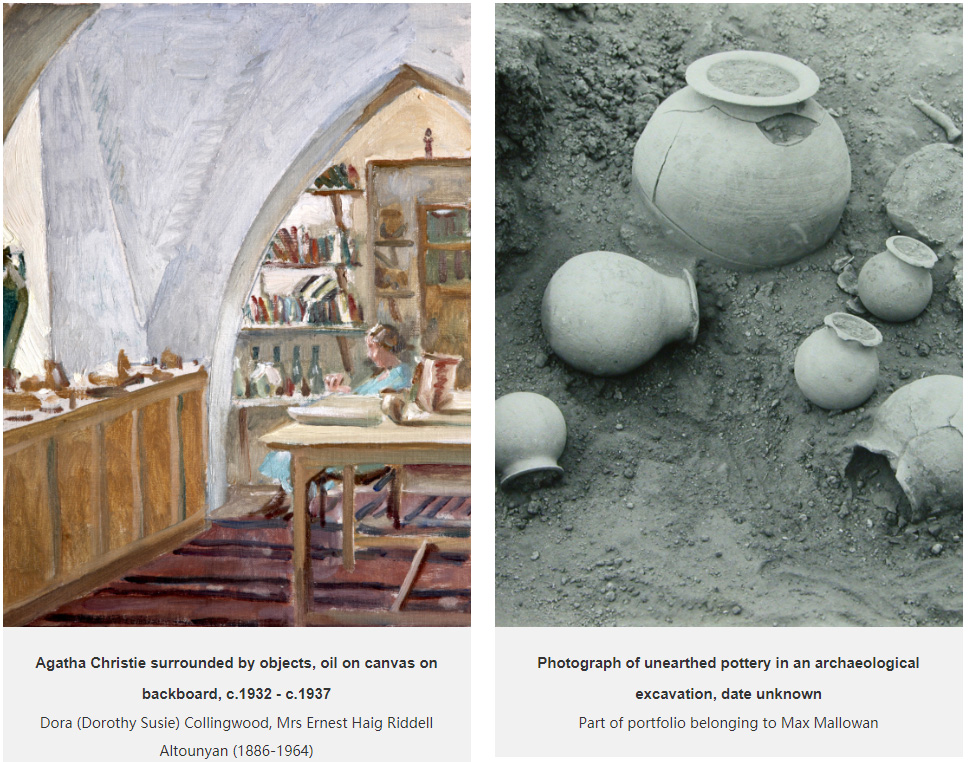 Max Mallowan (1904-78) was Agatha’s second husband. They married in 1930 having met in Ur in Iraq where Max was a member of the archaeological team and Agatha became a visitor and guest of Leonard Woolley, the expedition lead. We know from Agatha’s autobiography and from Max’s memoirs that ceramics were of particular interest to both of them. Agatha took up drawing lessons to record many of the ceramic finds and was a fan of the ‘brilliant colours’ of the glazed fragments. Between 1932 and 1937, Agatha spent some time in Chagar Bazar (northern Syria) where Max was working on another excavation. She was known to have repaired some of the ceramics that Max excavated. A painting on display at Greenway by Dora Collingwood shows Agatha surrounded by pots and, as Max described her there, ‘looking a picture of happiness' [4]. Max himself took a special interest in archaeological ceramics, using them to establish chronologies.